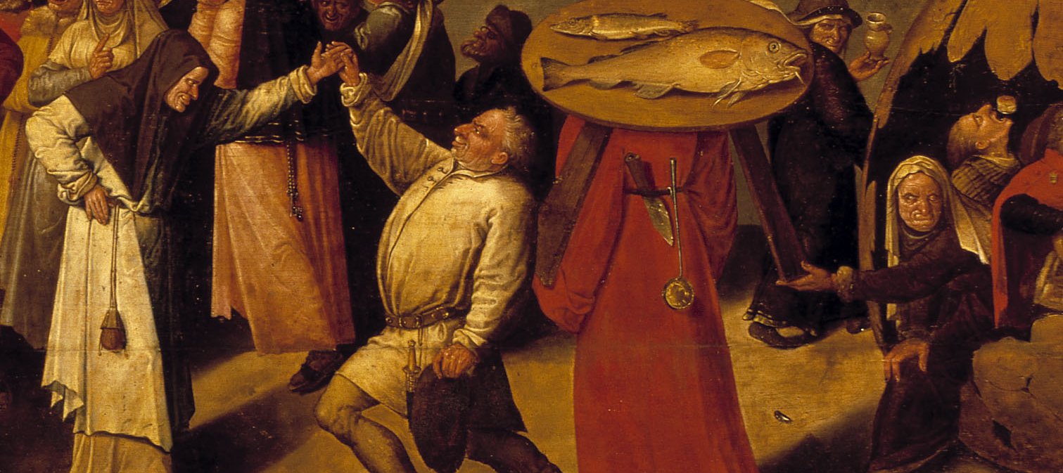 Want carnaval was vroeger het laatste moment in de winter waarop je dat allemaal mocht doen. Daarna begon de vastentijd, die duurde tot aan Pasen. Dan moest je sober leven en serieus zijn. Je mocht bijvoorbeeld geen vlees eten. Op het schilderij 'De strijd tussen carnaval en vasten' staat de 'magere' vastentijd dan ook pal tegenover het 'wilde' carnaval. Het woord 'carnaval' betekent onder andere 'carne vale: vlees vaarwel'. Daarom is de vastentijd uitgebeeld als een grote vis.